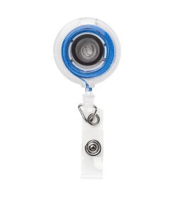 Porta gafete retráctil con clip sujetador. Incluye flexómetro de 100 cm.