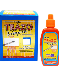 La Tinta Para Marcador Borrable marca Trazo Limpio es para Marcadores borrables y recargables de la misma Línea Trazo Limpio, son ideales para escribir sobre tableros Acrílicos, porcelanizados, y vidrios, Libre de Xilol y se Recarga con 30 gotas para cada marcador.